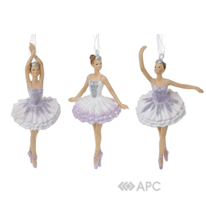 Іграшка на ялинку Балерина BonaDi 13 см 3 дизайни — це витонченість та тендітність, що стануть чудовим доповненням до Вашої колекції ялинкового оздоблення. Дизайн надихався вінтажними іграшками та пропонується в асортименті із трьох моделей. Ніжність ідеально передає довершена деталізація: акуратна промальовка, фактурні лінії, поверхня з блискітками. Колірна гама в білих та фіолетових відтінках додасть незабутнього шарму.