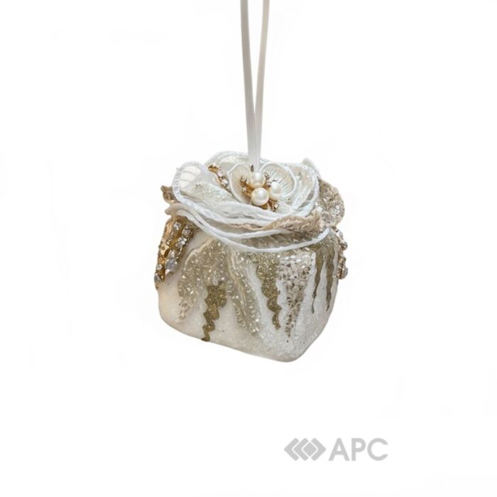Іграшка на ялинку Флоріаль Княжна Подарунок 5303 10 см – це новорічна прикраса, що поєднує класичні святкові форми з незвичайним розкішним дизайном.Виготовлена з легкого пінопласту, обгорнута м’яким оксамитом та оздоблена стрічками, блискітками, стразами та бісером, що створює ефект багатства та вишуканості. Ця іграшка ідеально підходить для створення унікального, тематичного або вінтажного декору, додаючи ялинці індивідуальності та казкового шарму. Вона має бездоганний вигляд на зелених гілках новорічного дерева, в стилізованих вінках та букетах, а також як яскравий та неповторний елемент інтер’єру. Унікальна прикраса виготовлена вручну, з ніжністю та теплотою, що зігріває в радісний період зимових свят. Вона може стати цікавим подарунком на Різдво чи важливим доповненням до вашої колекції новорічних іграшок.