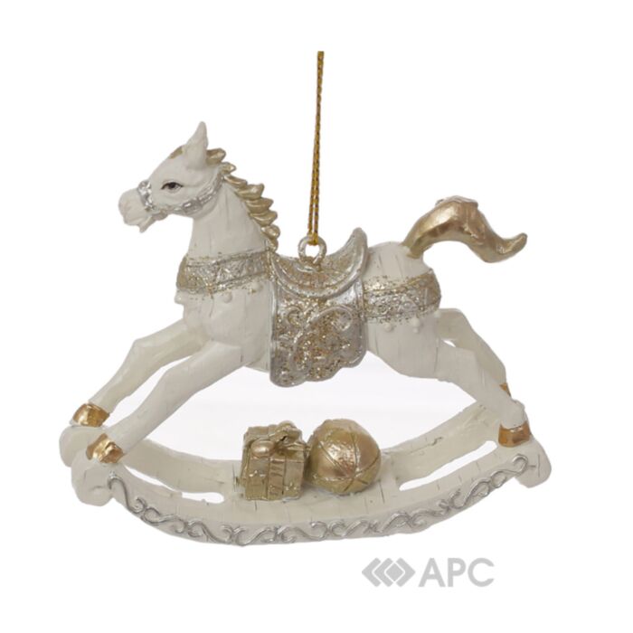 Іграшка на ялинку Конячка-гойдалка BonaDi 8,5 см шампань — це справжня витонченість, що стане прикрасою вашої колекції ялинкового оздоблення. Вона була натхненна вінтажним декором та ідеально відтворює його декоративні потертості. Довершена деталізація вражає: рельєфні візерунки, поверхня з блискітками та увага до найменших елементів дозволить відчути справжню естетичну насолоду. Колірна гама в білих, сріблястих та золотистих відтінках створять аристократичний шарм в будь-якому інтер’єрі.