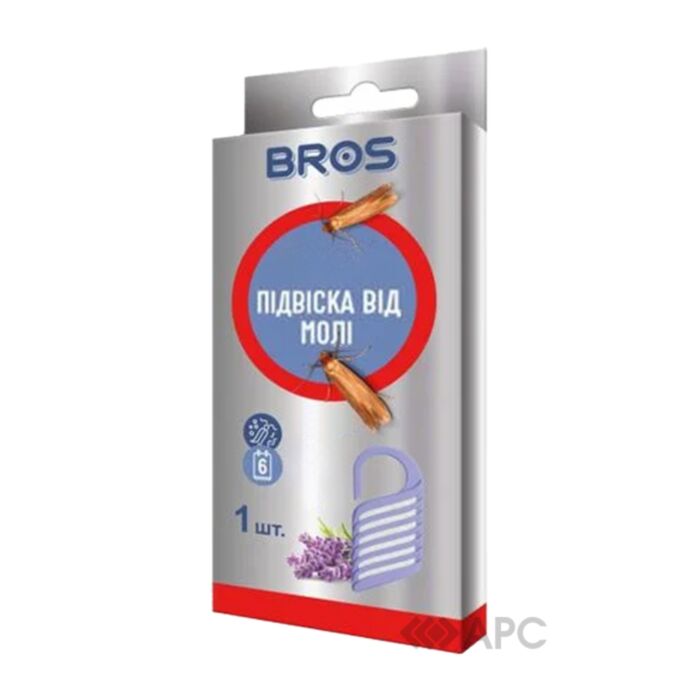 Інсектицидний засіб Bros секція від молі 1 шт – це ефективний хімічний препарат для знищення харчової та платтяної молі в домашніх умовах. Він надійно знищує дорослі особини, личинки і яйця комах, запобігаючи їх подальшому розмноженню. Активні інсектицидні компоненти вражають нервову систему шкідників, що призводить до їх загибелі. Продукт має зручну форму, що підвішується, тому його легко закріпити в шафах, гардеробах, ящиках. Підвіска ефективно діє до 6 місяців. Має легкий приємний аромат. При використанні обов’язково дотримуватися інструкції, зберігати в недоступному для дітей місці. Bros надійно знищує міль та запобігає появі нових поколінь.