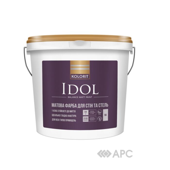 Kolorit Idol А - стійка фарба для покриття стін і стель в приміщеннях. Відмінно лягає на різні поверхні і зчіплюється з більшістю будівельних матеріалів. Фарба стійка до миття, що забезпечує не тільки легке нанесення, але і комфортний догляд за покриттям в процесі експлуатації. Призначена для фарбування оштукатурених, бетонних, цегляних та інших мінеральних поверхонь, а також гіпсокартонних, деревоволокнистих, деревостружкових плит і поверхонь, раніше пофарбованих водно-дисперсійною фарбою. Призначена для ремонтного фарбування раніше пофарбованих латексною або алкідною фарбою поверхонь. Покриття підсихає вже через 30 хв. та повністю висихає через 2 год. Приблизна витрата фарби 12 м2/л. Повністю висохле покриття фарби витримує температурний діапазон в межах від -40 до +80 °С. Купити інтер'єрну фарбу акрилатну Kolorit Idol А білу можна в інтернет магазині АРС. У нас завжди актуальна і доступна ціна. Доставка проводиться по Україні - Київ, Харків, Львів та ін.