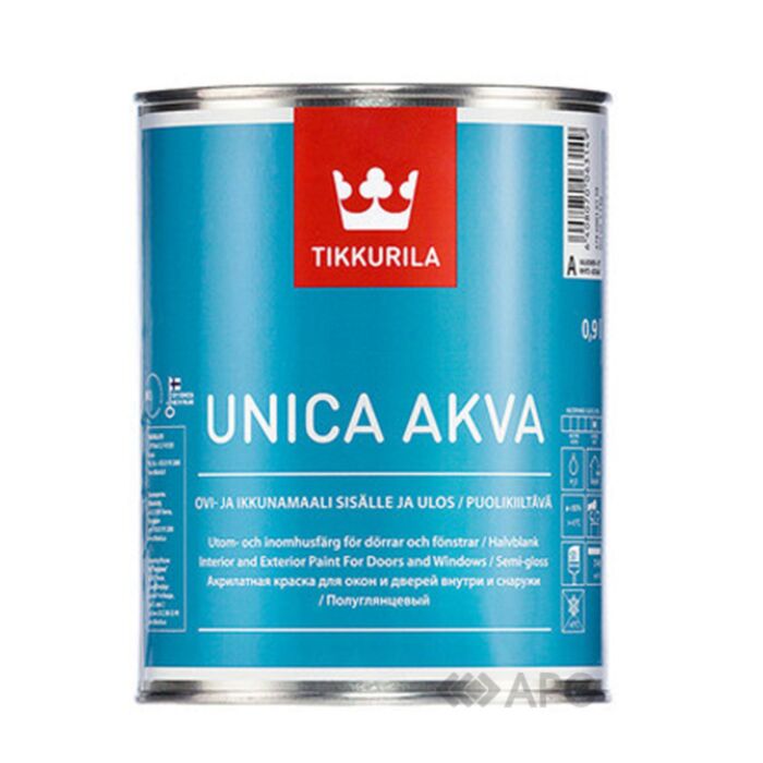 Інтер'єрна фарба акрилатна Tikkurila Unica Akva C безбарвна 0,9 л створена спеціально для фарбування вікон та дверей з деревини як всередині приміщення, так і зовні. Вона характеризується високими експлуатаційними властивостями і суттєво продовжує збереження оброблених поверхонь у відмінному естетичному та технічному стані. Фарба не жовтіє, не вигорає та відмінно витримує дію атмосферних опадів. Додатковими перевагами продукції є можливість її використання для захисту садових меблів та інших дерев'яних елементів із вже існуючим фарбовим покриттям. В результаті ви отримуєте привабливу напівглянцеву поверхню, на якій практично не помітно розводів та відбитків пальців, яка не виділяє в повітря неприємного запаху та токсичних речовин.