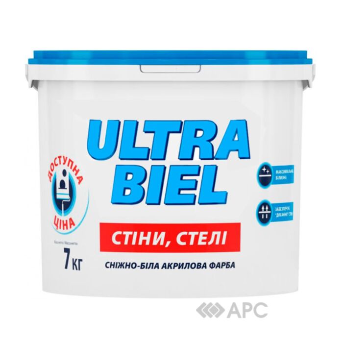 Водоемульсійна фарба акрилова Sniezka Ультра біла призначена для декоративно-захисного фарбування цементних, вапняно-цементних, гіпсових, гіпсокартонних і дерев'яних основ всередині житлових приміщень, що не підлягають інтенсивній експлуатації. Фарба паро- і газопроникна, що дає можливість стінам "дихати". Завдяки вмісту у своєму складі системи ULTRA BIEL оптично освітлює приміщення. Покриття фарби біле, матове. Можливе колорування у будь-який колір. Розхід: до 10м2/л при разовому фарбуванні. Для першого фарбування свіжих, не просочених основ рекомендується розвести фарбу залежно від поглинання основи, додаючи до 20% води. При фарбуванні старих, добре прилягаючих шарів фарбу не розводити або розвести додаючи лише 3-5% води. Купити інтер'єрну фарбу акрилову Sniezka Ультра білу можна в інтернет магазині АРС. У нас завжди актуальна і доступна ціна. Доставка здійснюється по Україні - Київ, Харків, Львів та ін.