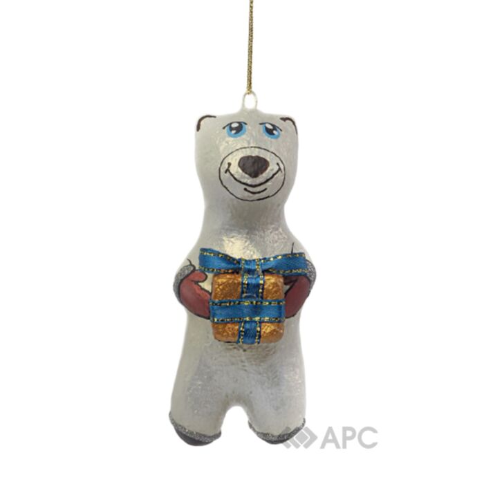 Ялинкова іграшка Koza Dereza Ведмедик з подарунком — це новорічна прикраса українського бренду, яка виготовляється за авторською, стародавньою технологією. Чудово доповнює святкове дерево своїм ретро стилем. Кожна фігурка виліплюється руками, запікається в спеціально розроблених формах у печі. Розписується вручну якісними акриловими фарбами, які дозволяють використовувати прикрасу ззовні. Створюється на основі тирси та нефарбованого паперу. Стане ідеальним презентом рідним на зимові свята. Висота виробу 11 см.