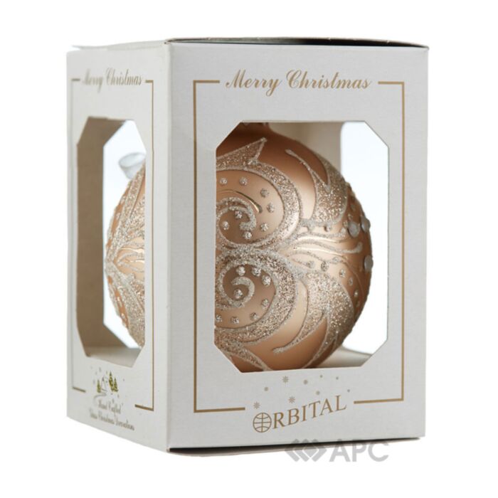 Скляна куля ручної роботи "Д-118" Orbital 80 мм світло-бежева матова красиво виглядатиме як на штучній, так і на живій ялинці. Вона може бути відмінним варіантом в якості подарунку. Яскраві кольори, оригінальні візерунки, цікаві декоративні елементи у вигляді блискіток, намистин, стразів роблять ексклюзивні ялинкові іграшки справжнім витвором мистецтва. Кожна з них дбайливо розписана руками художника-декоратора є оригінальною і особливою, приховує в собі маленький вогник тепла і дива новорічних свят. Тому, купіть скляну іграшку ручної роботи на новий рік та подаруйте собі і своїм близьким трохи радості та святкового настрою!