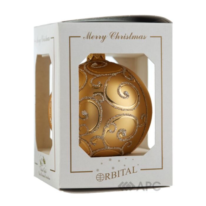 Скляна куля ручної роботи "Д-175-2" Orbital 80 мм золота матова красиво виглядатиме як на штучній, так і на живій ялинці. Вона може бути відмінним варіантом в якості подарунку. Яскраві кольори, оригінальні візерунки, цікаві декоративні елементи у вигляді блискіток, намистин, стразів роблять ексклюзивні ялинкові іграшки справжнім витвором мистецтва. Кожна з них дбайливо розписана руками художника-декоратора є оригінальною і особливою, приховує в собі маленький вогник тепла і дива новорічних свят. Тому, купіть скляну іграшку ручної роботи на новий рік та подаруйте собі і своїм близьким трохи радості та святкового настрою!