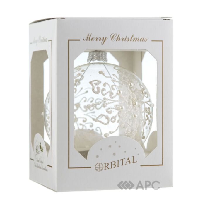 Скляна куля ручної роботи "Д-235" Orbital 100 мм прозора красиво виглядатиме як на штучній, так і на живій ялинці. Вона може бути відмінним варіантом в якості подарунку. Яскраві кольори, оригінальні візерунки, цікаві декоративні елементи у вигляді блискіток, намистин, стразів роблять ексклюзивні ялинкові іграшки справжнім витвором мистецтва. Кожна з них дбайливо розписана руками художника-декоратора є оригінальною і особливою, приховує в собі маленький вогник тепла і дива новорічних свят. Тому, купіть скляну іграшку ручної роботи на новий рік та подаруйте собі і своїм близьким трохи радості та святкового настрою!