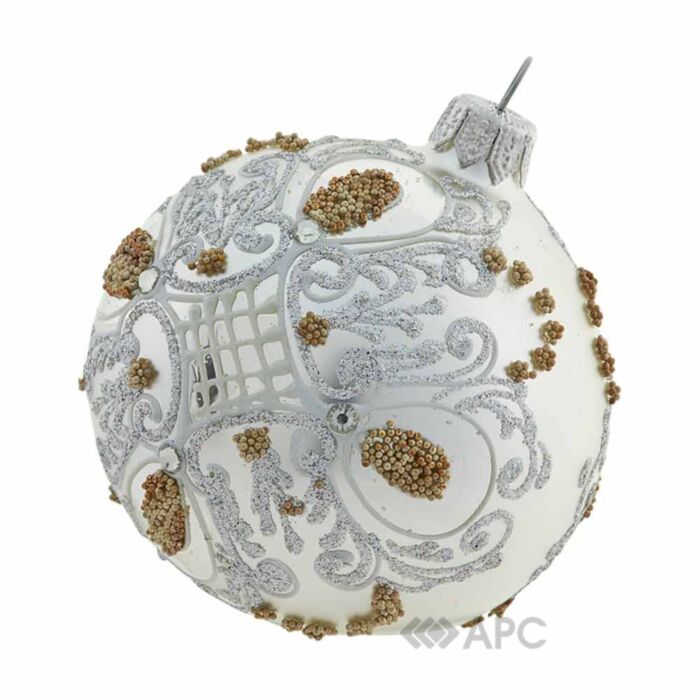 Скляна куля ручної роботи "Д-300" Orbital 80 мм біла з золотом красиво виглядатиме як на штучній, так і на живій ялинці. Вона може бути відмінним варіантом в якості подарунку. Яскраві кольори, оригінальні візерунки, цікаві декоративні елементи у вигляді блискіток, намистин, стразів роблять ексклюзивні ялинкові іграшки справжнім витвором мистецтва. Кожна з них дбайливо розписана руками художника-декоратора є оригінальною та особливою, приховує в собі маленький вогник тепла і дива новорічних свят. Тому, купіть скляну іграшку ручної роботи на новий рік та подаруйте собі й своїм близьким трохи радості та святкового настрою!