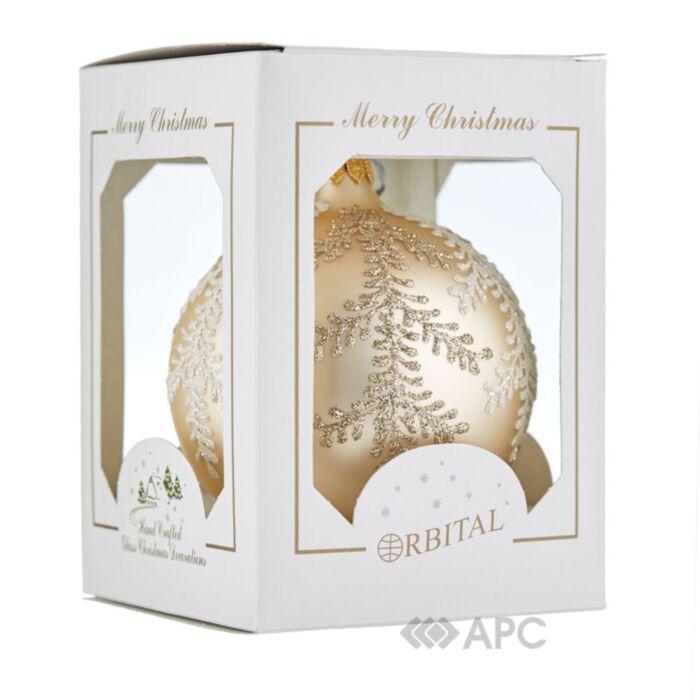 Скляна куля ручної роботи "Гілочки" Orbital 100 Д-195 слонова кість красиво виглядатиме як на штучній, так і на живій ялинці. Вона може бути відмінним варіантом в якості подарунку. Яскраві кольори, оригінальні візерунки, цікаві декоративні елементи у вигляді блискіток, намистин, стразів роблять ексклюзивні ялинкові іграшки справжнім витвором мистецтва. Кожна з них дбайливо розписана руками художника-декоратора є оригінальною і особливою, приховує в собі маленький вогник тепла і дива новорічних свят. Тому, купіть скляну іграшку ручної роботи на новий рік та подаруйте собі і своїм близьким трохи радості та святкового настрою!