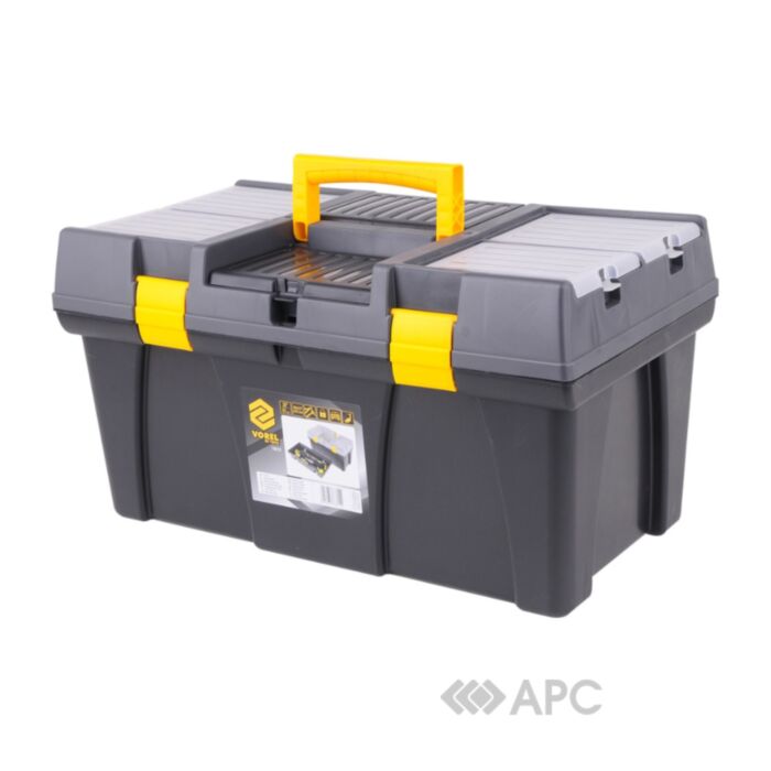 Ящик для інструментів VOREL 78815 26" 595*337*316 мм - необхідна річ не лише для професійних майстрів, а й для господарів, які мають у своєму арсеналі чимало дрібного начиння для побутового ремонту. Пластиковий кейс відрізняється легкістю та мобільністю, що дуже важливо при його транспортуванні. Проте, матеріал може постраждати від сильних ударів та механічних пошкоджень. Перевантажувати пластиковий ящик для інструментів також не варто. Такий органайзер допоможе зберегти всі інструменти у чистоті та порядку.
