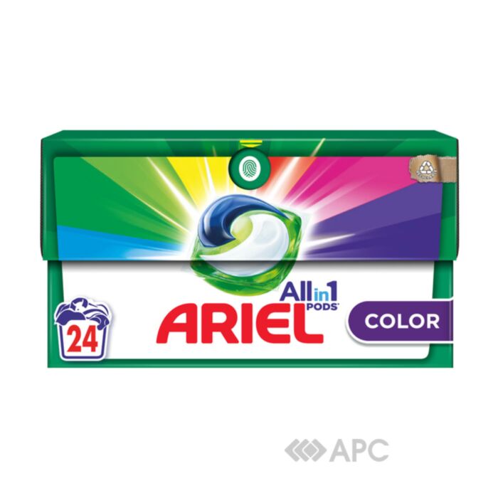 Капсули для прання Ariel Color 24*19,7 г це найзручніший формат продукту, що допоможе зробити улюблені речі чистими. Інноваційна формула дозволяє складу глибоко проникати в тканини та видаляти забруднення, не руйнуючи волокна та зберігаючи колір. Неймовірна м’якість, свіжий аромат залишаться із вами надовго. Зручний формат капсул дозволяє очистити більшу кількість речей за один раз, тож упаковки вистачить на достатню кількість циклів прання.