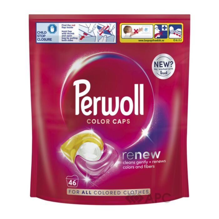 Капсули для прання Perwoll Color — це універсальний засіб від польського виробника, що поєднує у собі гель та пральний порошок, тому вони ефективно очищають бруд та плями будь-якої складності. Призначені для прання кольорових речей, захищають від втрати кольору та кошлатання. Характеризуються антистатичними властивостями, пом’якшують воду, надають речам приємного, легкого аромату. Підходять будь-якому типу тканин. Ефективно діють при температурі 40-60 °C. Активні компоненти запобігають появі нальоту у пральній машинці, цим самим продовжують термін її служби. В упакування входить 46 штук, що вистачить на тривалий час.