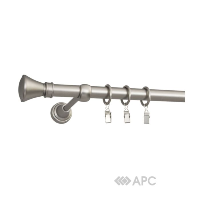 Однорядний карниз Bojanek Colosseum виготовляється з високоякісної сталі та має спеціальне лаковане покриття, що гарантує стійкість до механічних пошкоджень. Трубчастий карниз кольору сатин нікель вирізняється мінімалістичним і делікатним дизайном, відмінними експлуатаційними характеристиками, надійністю і довговічністю. Він легко кріпиться на стіну за допомогою тримачів та витримує навантаження легких, середньої важкості і важких тканинних штор. Довжина — 1,6 м, діаметр — 19 мм. В комплект входять труби, тримачі, кільця з прищіпками-жабками.
