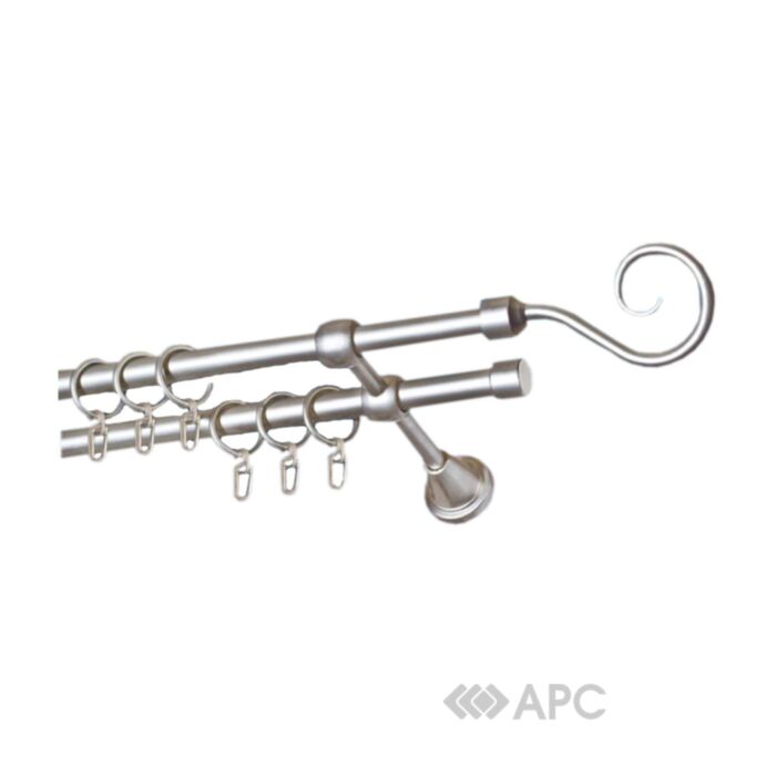 Стильний і неповторний трубчастий карниз Plastidea Гак може стати окрасою Вашого помешкання, адже вирізняється привабливим дизайном, міцністю і довговічністю. Дворядний металевий карниз із спіральними наконечниками кольору сатин легко кріпиться за допомогою настінних кронштейнів, витримує навантаження легких і середньої важкості тканинних штор. Довжина виробу — 1,6 м, діаметр — 16 мм.
