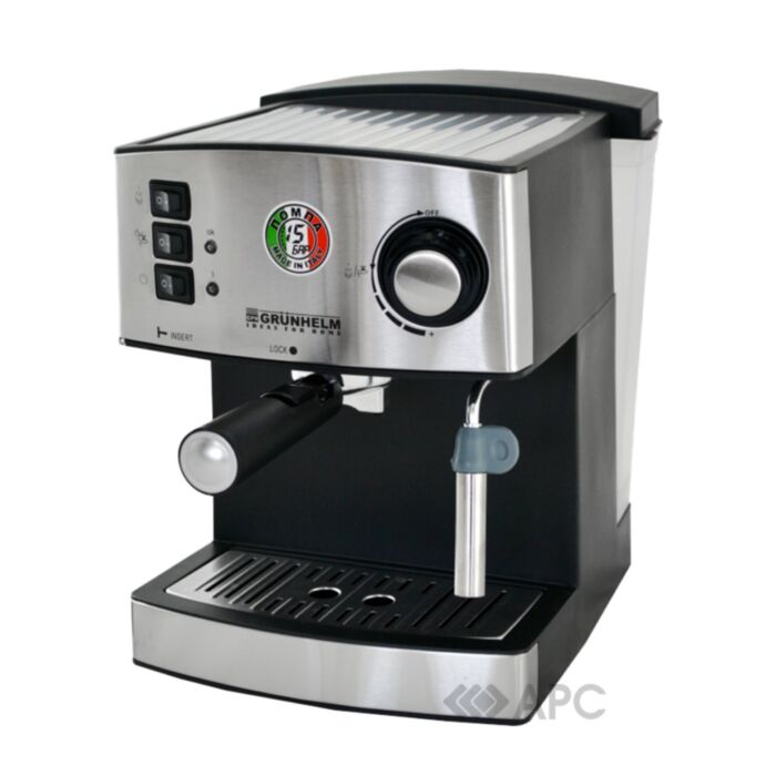 Кавоварка ріжкова Grunhelm GEC15 850 Вт – це можливість в домашніх умовах приготувати смачні гарячі тонізуючі напої. Прилад під високим тиском пропускає воду через мелену каву, тому процес приготування не займає багато часу, а шкідливий кофеїн не встигає виділитися. Напій не гірчить та зберігає корисні властивості. За допомогою парової трубки можна збити молоко для лате чи капучино. Зручний резервуар з індикатором рівня має об’єм 1.5 л, тому дозволяє приготувати до 6 чашок напою. Елегантний дизайн та функціональні властивості передбачають використання кавоварки вдома та в офісі.