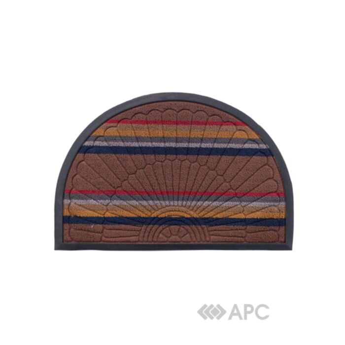 Килимок Dariana Multicolor півколо 40*60 см виготовлений із високоякісної гуми, котра не боїться атмосферних впливів. Завдяки гумовій основі він не ковзає по поверхні. Килимок оснащений ворсовим покриттям з нейлонових ниток, котрі стійкі до дії ультрафіолету та не осипаються від навантаження. Ворс має хорошу фактурну поверхню у вигляді геометричного узору. Килимок можна використовувати як у квартирах, так і в приватних будинках.