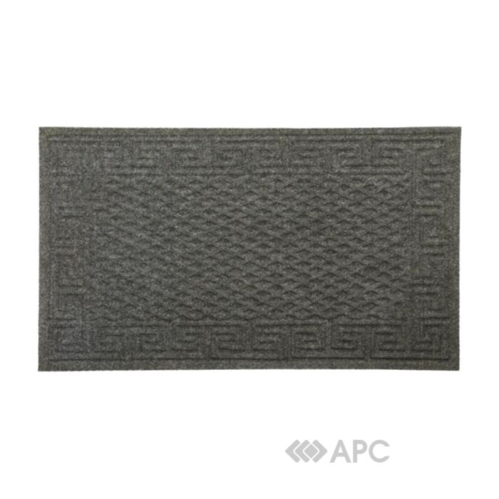 Килимок під двері Дубенський завод ГТВ К-30 з ворсовим покриттям 40*70 см виготовлений із високоякісної гуми, котра не боїться атмосферних впливів, адже вона не деформується при високих температурах та не твердіє на морозі. Килимок оснащений ворсовим покриттям із хорошою фактурною поверхнею у вигляді геометричного узору в грецькому стилі. Його можна використовувати як в квартирах, так і в приватних будинках.