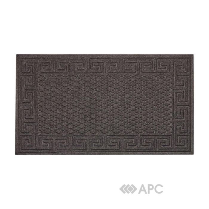 Килимок під двері Дубенський завод ГТВ К-31 з ворсовим покриттям 40*60 см виготовлений із високоякісної гуми, котра не боїться атмосферних впливів, адже вона не деформується при високих температурах та не твердіє на морозі. Килимок оснащений ворсовим покриттям із хорошою фактурною поверхнею у вигляді геометричного узору в грецькому стилі. Його можна використовувати як в квартирах, так і в приватних будинках.