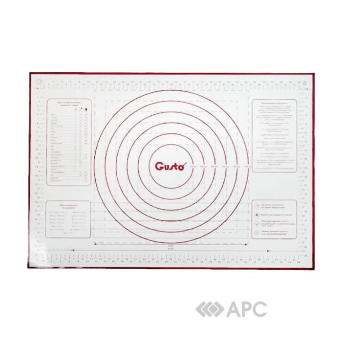 Килимок силіконовий Gusto GT-4565-2 зміцнений 45*65 см виготовлений з безпечного харчового матеріалу. Розмітка допоможе ідеально розкачувати тісто потрібного розміру. Виріб не змінює свою початкову форму та колір, не ковзає під час роботи.