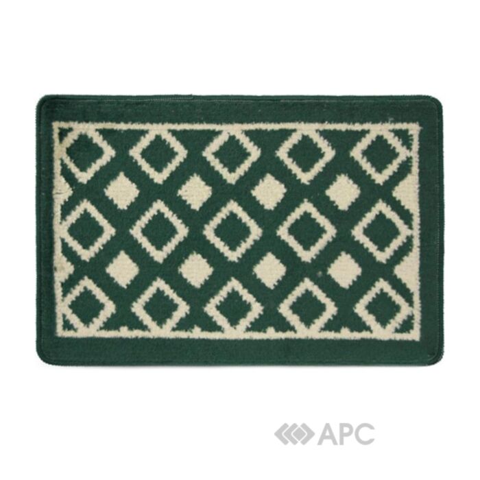 Килим Dariana Лапки/Плитка 40*60 см зелений виготовлений із якісного м’якого поліпропілену. Латексна основа килимка запобігає ковзанню по поверхнях. Килим приємний на дотик та чудово втягує вологу. Виріб оснащений хорошим ворсовим покриттям із геометричним візерунком. Ворс фарбований спеціальною технікою, завдяки чому він довго не втрачатиме свій яскравий колір. Килим легко чиститься, його можна випрати у пральній машині, але температура води не повинна перевищувати 30 градусів.