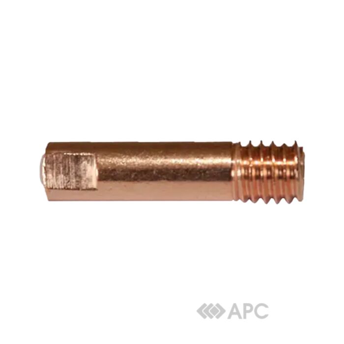 Кінцевик контактний Gradient RCU0003-08 E-Cu M6*25*0,8 мм призначений для використання зі зварювальним пальником MIG/MAG для підведення зварювального струму до дроту. Вибирається залежно від діаметра і матеріалу дроту, а також типорозміру різьби тримача (вставки) під кінцевик. Він є високоточним витратним елементом, своєчасна заміна якого, забезпечить стабільну та високу якість зварювальних робіт. Зношування отвору контактного кінцевика не повинно перевищувати 1/3 діаметра дроту. Ривки зварювального дроту під час зварювання можуть сигналізувати про знос струмознімального кінцевика або поганий контакт у зварювальному пальнику. Використовується для зварювання вуглецевих та низьколегованих сталей.