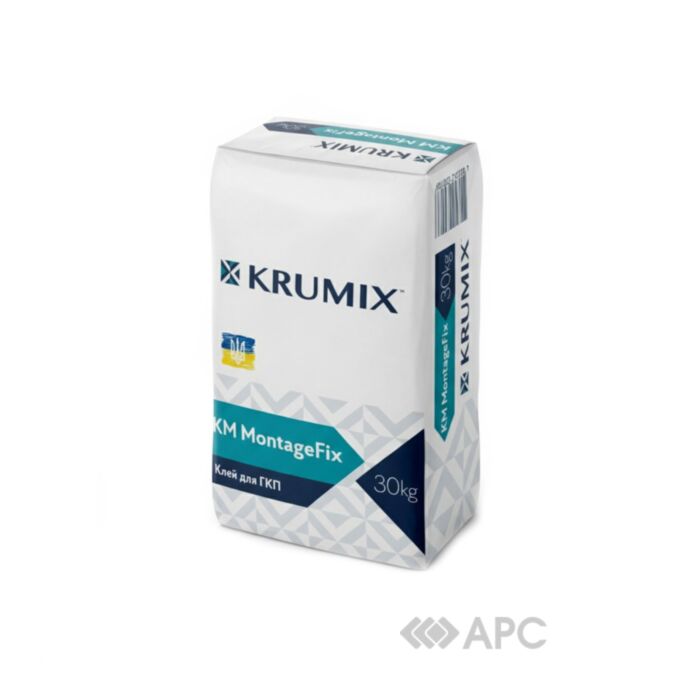 Клей KM MontageFix — монтажний клей для кріплення гіпсокартонових листів. Підходить для нанесення на бетон, цеглу (керамічну і силікатну) та штукатурку (гіпсову, вапняно-цементну і цементну). Клей швидко висихає, пластичний та добре зчеплюється. Даний продукт з маркуванням “Зелений журавлик”. Це означає, що при створенні використовувалася якісна сировина без токсичних речовин. Процес виробництва не забруднює довкілля та відходи придатні для повторної переробки. Клей продається в пачці 30 кг.