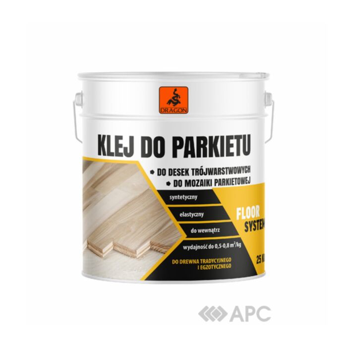 Клей для паркету Dragon 25 кг – це синтетичний засіб темно-сірого кольору, призначений для приклеювання паркету, паркетної мозаїки та інших дерев'яних підлогових покриттів, включаючи екзотичні породи дерева, а також ДВП та ДСП, до різних основ. Колір швів після висихання стає темно-бежевим. Цей еластичний, морозостійкий та водостійкий клей має високу міцність на зсув, не викликає зміни кольору деревини та не має різкого запаху, що робить його придатним для внутрішніх робіт при температурі застосування від +18°C до +25°C (рекомендована температура основи від +15°C до +25°C). Щільність засобу становить 1,5 кг/л, а витрата коливається від 0,8 до 1,5 м²/л залежно від типу та пористості поверхні. Час повного затвердіння – 24 години. Не використовувати, якщо в кімнаті встановлена тепла підлога. Клей легко наноситься, швидко діє, забезпечуючи міцне та довговічне з'єднання, підходить для різних типів підлог та основ і є економним у використанні.