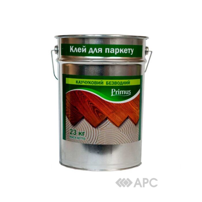 Клей для паркету (каучуковий) "ПРІМУС" застосовується для приклеювання паркету, паркетної мозаїки, дерев'яних і пінопластових касетонів, пробки, дерев'яних планок і панелей до цементних, цементно-вапняним і дерев'яним основам. Особливо рекомендується для приклеювання сортів паркету чутливих до вологи (бук, береза, граб, ясен і т.д.).