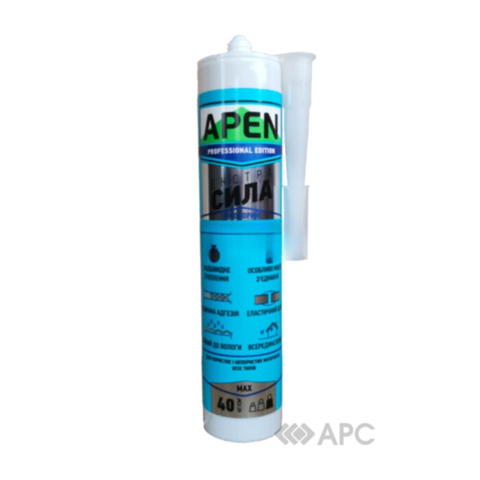 Клей каучуковий Apen Екстра сила 280 мл - це високоякісний монтажний клей, призначений для швидкого і надійного приклеювання важких конструкцій, для кріплення кесонів, гіпсокартонних плит, порогів, стінових панелей, зовнішньої обшивки, підвіконників і дверних рам, приклеювання керамічних плит, ПВХ, ДСП, металу, пластику, гуми, елементів з деревини, піни і гіпсу до традиційних поверхонь. Технічні характеристики: Основа: каучукова; Температура при нанесенні: +10…+30 °С; Колір: прозорий. Купити клей каучуковий Apen Екстра сила 280 мл можна в інтернет магазині АРС. У нас завжди актуальна і доступна ціна. Доставка здійснюється по Україні - Київ, Харків, Львів та ін.