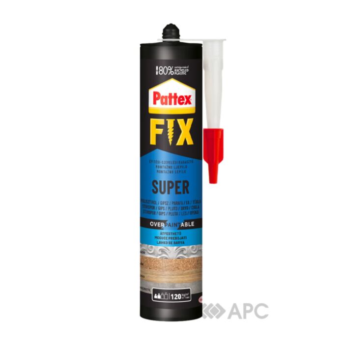 Клей монтажний Pattex Fix Super 400 г використовується для швидкого приклеювання декоративних елементів з пінополістиролу та легких виробів з пінополіуретану на деревину, бетон, цеглу, штукатурку і гіпсокартон.
