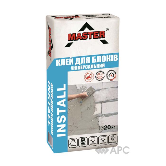 Клей для піноблоків Master Install 20 кг -  спеціалізована кладочна суміш призначена для кладки стіновими блоками з легкого бетону, силікату, вапняку.