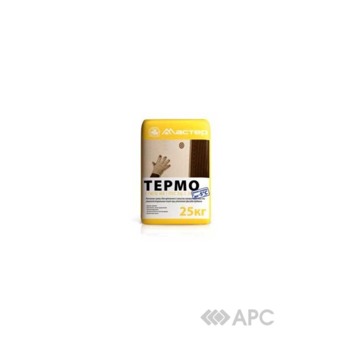 Клей термостійкий Мастер Термо Зимова Формула застосовується для кріплення мінераловатних або пінополістирольних плит при «легкому - мокрому» способі утеплення фасадів будівель з цегли, бетону, газобетону, вапняку і т.п., а також для подальшого виготовлення армуючого шару системи утеплення. Склад Майстер «Термо. Зимова формула» має підвищену стійкість до атмосферних впливів.