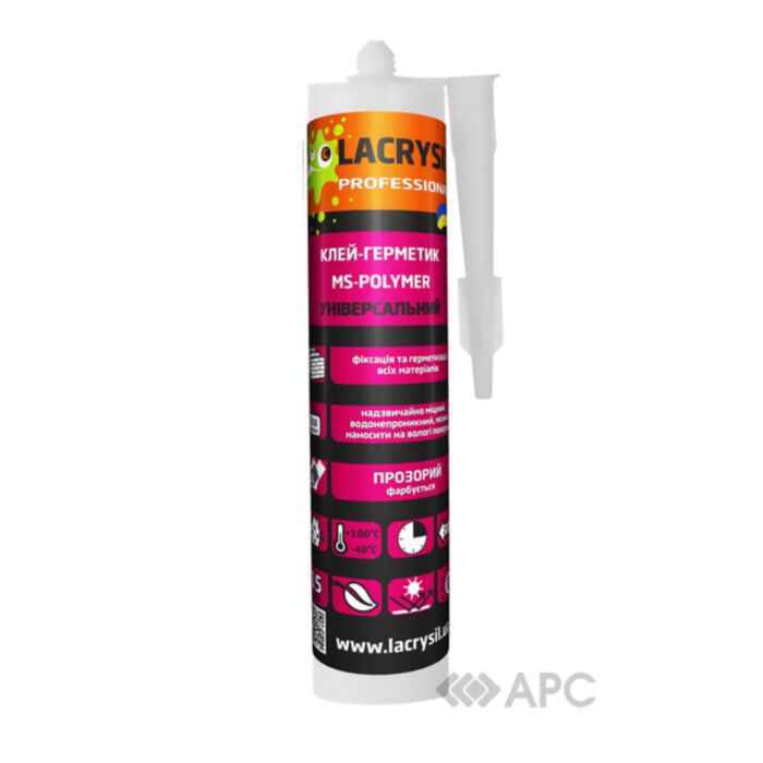 Клей-герметик Lacrysil на основі МС-Полімерів прозорий 280г призначений для внутрішніх і зовнішніх робіт з різними видами матеріалів, серед яких метал, скло, дерево, бетон, гіпс, штукатурка та багато інших. Завдяки відмінним експлуатаційним характеристикам засіб утворює міцний і надійний прозорий шов, володіє водостійкістю, термостійкістю, високою адгезією та еластичністю. Унікальний клей-герметик має короткий термін висихання, тож остаточний результат можна отримати вже через 24-48 годин в залежності від конкретних умов використання. Українська компанія Lacrysil спеціалізується на виготовленні високоякісних акрилових клеїв та силіконових герметиків, має багаторічний досвід і неабияку популярність.