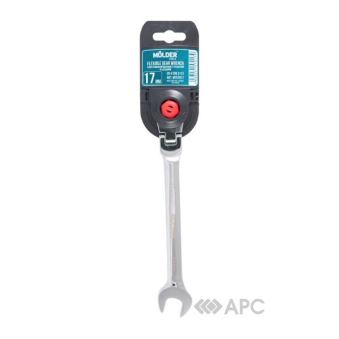 Ключ комбінований Molder — це ідеальний інструмент для монтажу та демонтажу різьбових з'єднань у важкодоступних місцях. Завдяки карданному механізму і тріскачці з зубцями, ви зможете працювати навіть під кутом. Виготовляється із хром-ванадієвої сталі, що відрізняється високою міцністю та довговічністю.