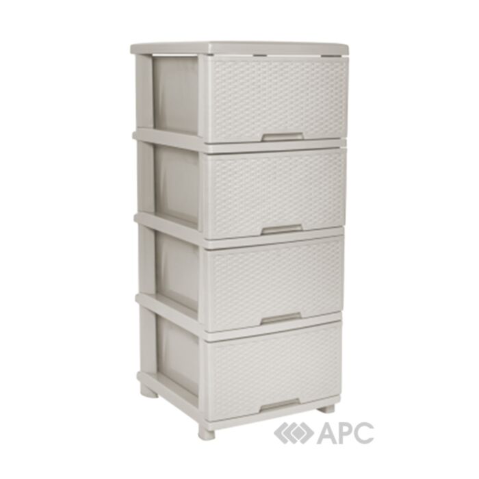 Декоративний збірний комод - чудове рішення для розумної організації вільного простору в дитячій кімнаті, передпокої, кладовці та ін. 4 ящики легко вміщують іграшки, речі побутового користування, дрібні деталі та негабаритні інструменти. Пластиковий комод стійкий до впливу вологи, що дозволяє розташовувати виріб у ванній кімнаті. Різноплановий декор доступний у понад 10-ти дизайнах, тому підійде до будь-якого стилю приміщення.