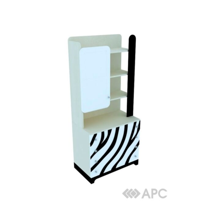 Складається з комода на чотири висувних шухляди і надбудови з відкритими поличками і дверцятами.