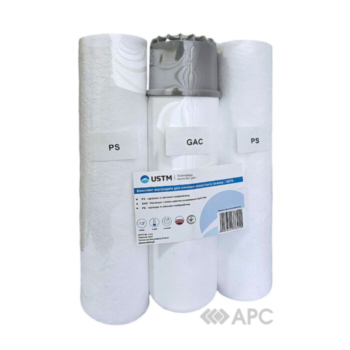 Комплект картриджів USTM PS+GAC+PS - це ідеальне рішення для покращення якості води у вашому домі. Цей набір розроблений для фільтрів зворотного осмосу SET6 і має 3 картриджі: PS1, GAC і PS5. Кожен з них відповідає за свій етап фільтрації, що дозволяє досягти максимальної ефективності очищення від різних забруднень, включаючи частки, хлор і інші непотрібні речовини.