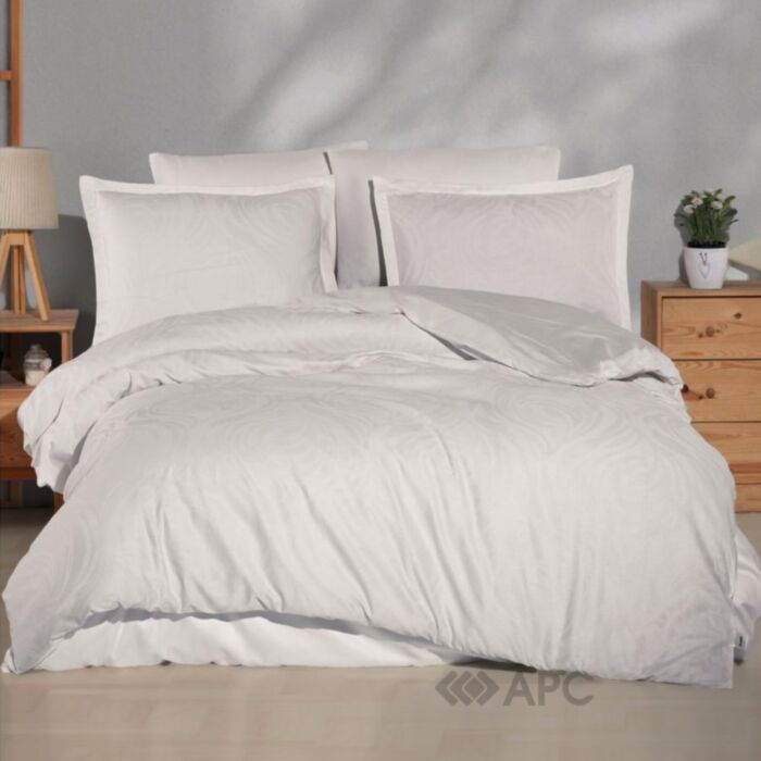 Комплект постільної білизни Clasy Tarva 200*220 см білий – це розкішний євро набір елітної постільної білизни від турецького виробника Clasy, що гарантує комфортний відпочинок та додасть вишуканості ліжку. Виготовлений з високоякісного жакард-сатину, що складається зі 100% натуральної бавовни. Щільність тканини становить 210TC, що свідчить про її виняткову міцність, довговічність та зносостійкість. Характерний рельєфний малюнок, який надає комплекту особливої елегантності та глибини, досягається завдяки складному переплетенню ниток, що створюється на жакардових верстатах. Він практично не розтягується, стійкий до температурних перепадів і чудово зберігає первинне забарвлення. До складу входять: підковдра розміром 200х220 см, простирадо 240х260 см та чотири наволочки: дві 50х70 см і дві 70х70 см, що дозволяє повноцінно та гармонійно оформити спальне місце.