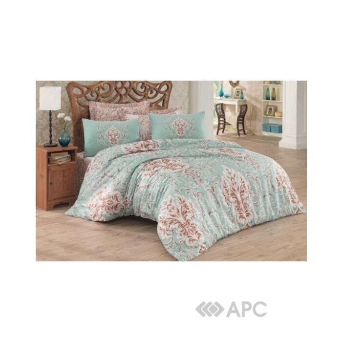 Комплект постільної білизни Royal Saten Sevgi Turkuaz від Cotton Box виготовляється з тканини сатин (100% бавовняне волокно), завдяки особливому переплетення ниток тканина має чарівним блиском і гладкою поверхнею.