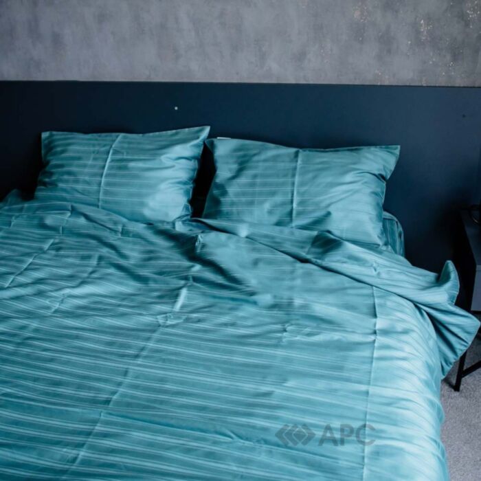 Комплект постільної білизни Green Ark сатин 200*220 см зелений подарує комфортний відпочинок та приємне відчуття тепла і затишку у спальні. Натуральний турецький страйп сатин має найкращі показники м’якості та гладкості, а також високу проникність повітря та вологи, що створить ідеальну атмосферу під час сну. Тканина відрізняється також високою зносостійкістю: витримує до 400 циклів прання без утворення ковтунців. До набору входить підковдра 200*220 см, простирадло 220*260 см та дві наволочки 50*70 см.Комплект стане чудовим подарунком для рідних чи близьких та створить особливий настрій у спальні.
