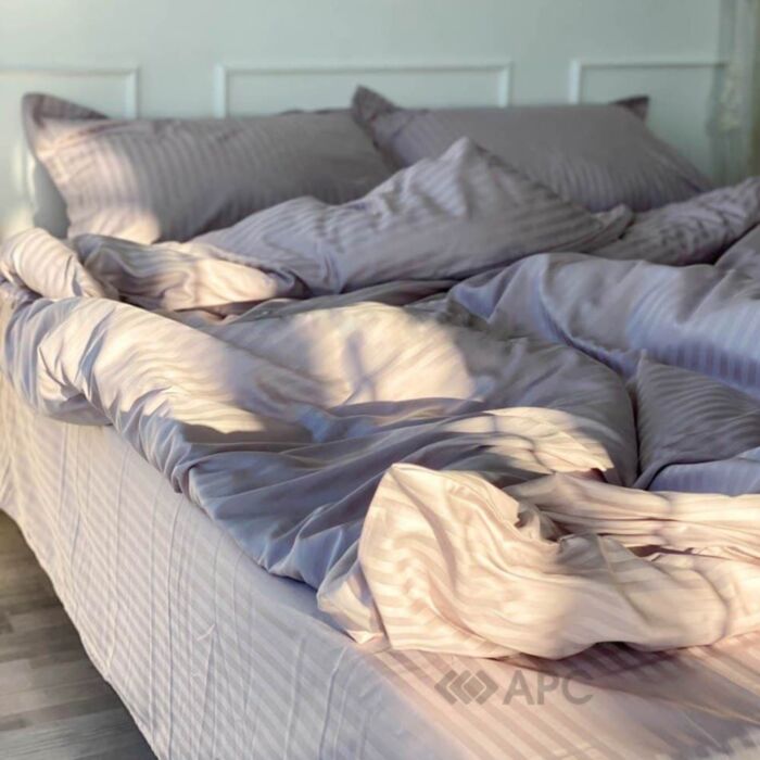 Комплект постільної білизни Na Khmari cтрайп-сатин преміум Shell 200*220 виготовляється з 100% бавовни з щільністю 145 г/м. Різновид сатину-жаккарда вважається елітною тканиною та характеризується малюнком у вигляді смужок. Завдяки принтові в перламутрових відтінках полотно доповнюється особливим блиском й еластичністю. Гладкофарбована тканина не линяє та витримує до 500 прань в гарячій воді без шкоди для кольору. Матеріал не подразнює шкіру завдяки своїй приємній та м'якій текстурі. За своїми характеристиками він нагадує шовк, але з вищими експлуатаційними показниками. Постільний набір подарує своєму власникові здоровий сон, повноцінний відпочинок і комфорт.