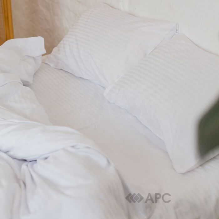 Комплект постільної білизни Na Khmari cтрайп-сатин преміум White 200*220 виготовляється з 100% бавовни з щільністю 145 г/м. Різновид сатину-жаккарда вважається елітною тканиною та характеризується малюнком у вигляді смужок. Завдяки принтові в перламутрових відтінках полотно доповнюється особливим блиском й еластичністю. Гладкофарбована тканина не линяє та витримує до 500 прань в гарячій воді без шкоди для кольору. Матеріал не подразнює шкіру завдяки своїй приємній та м'якій текстурі. За своїми характеристиками він нагадує шовк, але з вищими експлуатаційними показниками. Постільний набір подарує своєму власникові здоровий сон, повноцінний відпочинок і комфорт.