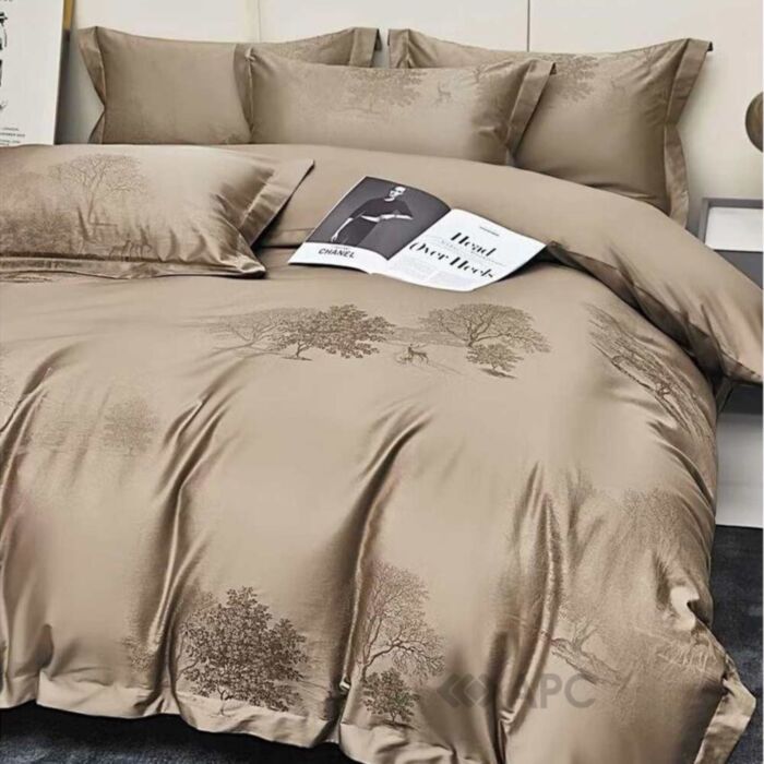 Комплект постільної білизни Soho Boutique Tree A130091 200*230 см – це двоспальний євро набір, виготовлений із високоякісного турецького сатину жакард преміумкласу. Натуральна бавовна в поєднанні з рельєфним візерунком додає вишуканості та елегантності спальні. Тканина добре пропускає повітря, не електризується, має гладку та блискучу поверхню.Матеріал приємний на дотик, міцний, не втрачає колір та розміри після прання. Наволочки та підковдра мають широку облямівку по периметру, що додає ошатного вигляду виробам. Розкішна білизна Soho подарує приємний комфорт для якісного відпочинку та стильну естетику спальні.