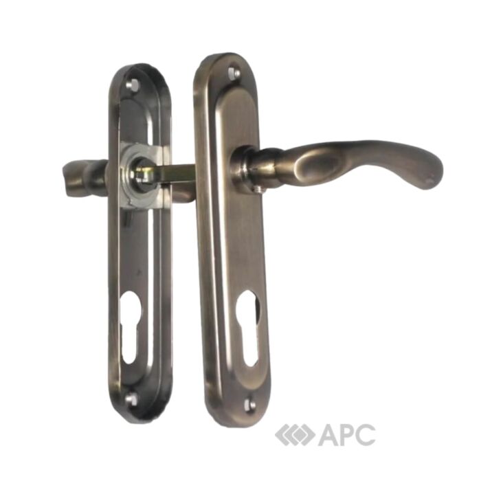 Комплект ручки на планці Bruno 910K6 із замком 1025 та циліндром 60 мм матова антична латунь — це елегантне та надійне рішення для дерев'яних та металевих дверей, що поєднує класичний стиль із сучасною функціональністю. Вона підходить для будь-якої сторони відкривання дверей. Розмір планки 235 x 38 мм. Ручка виготовлена з алюмінію та покрита гальванічним покриттям у матовій античній латуні, що надає їй вишуканого вигляду та забезпечує високу стійкість до зносу й корозії. Комплект оснащений квадратом 8 мм довжиною 100 мм та має міжосьову відстань 62 мм. Кріплення здійснюється за допомогою саморізів, стяжок та гуженів, що забезпечує надійний монтаж. Набір від українського бренду Bruno – це вибір для тих, хто цінує поєднання довговічності, безпеки та неперевершеної естетики, здатної підкреслити естетику будь-яких дверей.