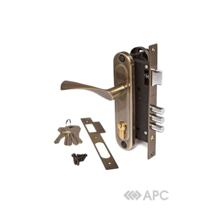 Комплект врізного замка Apecs — це відмінне рішення для вашої оселі, адже гарантує високу якість, а також доступну вартість. У комплектацію входить: циліндровий механізм секретності, серцевина, кріплення, планки, 5 ключів англійського типу. Підходить для вхідних та міжкімнатних дерев’яних дверей на праву та ліву сторону відкривання, виготовляється зі сталі у бронзовому відтінку. Містить 3 ригелі, а також гальванічне, оцинковане покриття, яке захищає від корозії. Діаметр ригелів 12 мм, вихід 20 мм, висота виробу 18,5 см, ширина 4,1.
