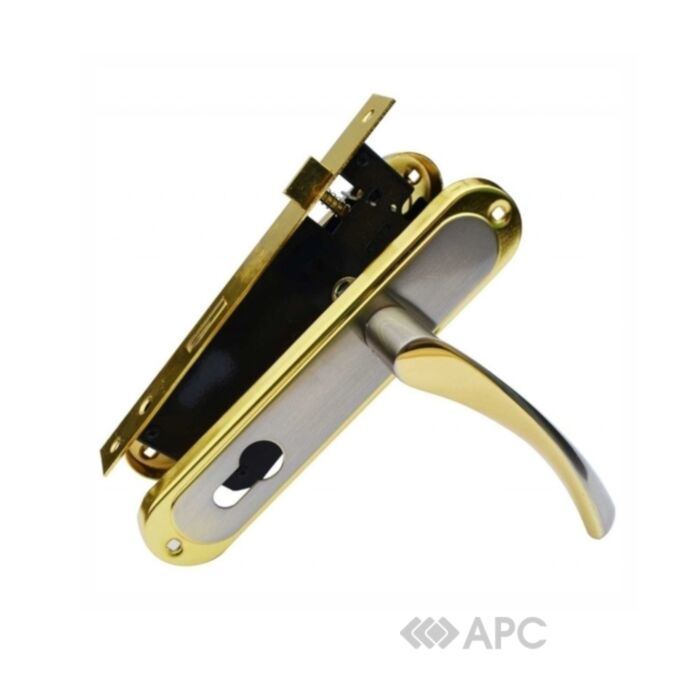 Дверна ручка - аксесуар дверей для її ручного відкривання, що є одним з необхідних елементів дверної фурнітури. Основна функція дверної ручки (як вхідних, так і міжкімнатних дверей) - це управління замком і дверима. Тип: комплект ручок на планці. Розмір: міжосьова відстань 70 мм. Комплектація: 2 ручки на планці, механізм, циліндр, з'єднувач, відповідна планка, кріплення.