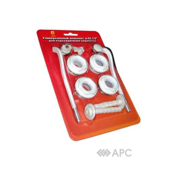 Універсальний монтажний комплект на блістері призначений для підключення алюмінієвих і біметалічних радіаторів до системи опалення. Силіконова прокладка, встановлена на перехідниках в спеціальній канавці, дозволяє уникнути течі теплоносія в процесі експлуатації радіатора.