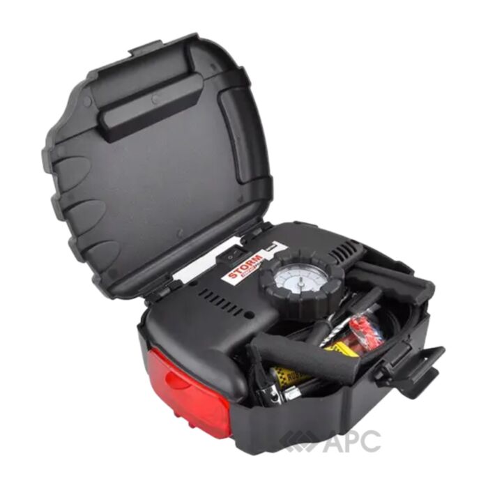 Компресор автомобільний Storm Compact Power 20700 12B 7 Атм 12 л/хв використовується для накачування коліс і камер, які обладнані спеціальним клапаном в легкових автомобілях, позашляховиках та мінівенах. Манометр показує точне визначення тиску. Невеликі габарити дозволяють легко переміщувати пристрій та транспортувати.