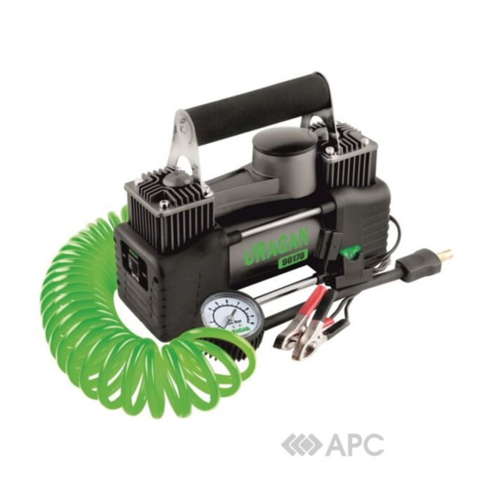 Компресор автомобільний Uragan 90130 170 Вт - це класичний двопоршневий компресор підвищеної потужності, який живиться від клем АКБ, що дає можливість йому накачати шини, човни й будь-який спортивний інвентар в два рази швидше, ніж будь-яким іншим автокомпресором. Манометр показує точне визначення тиску. Невеликі габарити дозволяють легко переміщувати пристрій та транспортувати.