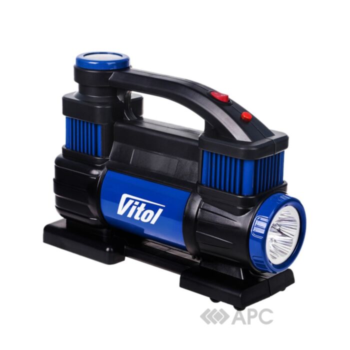 Автомобільний двоциліндровий компресор Vitol ТК-70 – це потужний і надійний помічник для кожного водія, який гарантує швидке та ефективне накачування шин, забезпечуючи комфорт і безпеку на дорозі. Завдяки високій продуктивності 90 л/хв і максимальному тиску 150 PSI (10 Атм), він здатен накачати колесо всього за 3–4 хвилини.